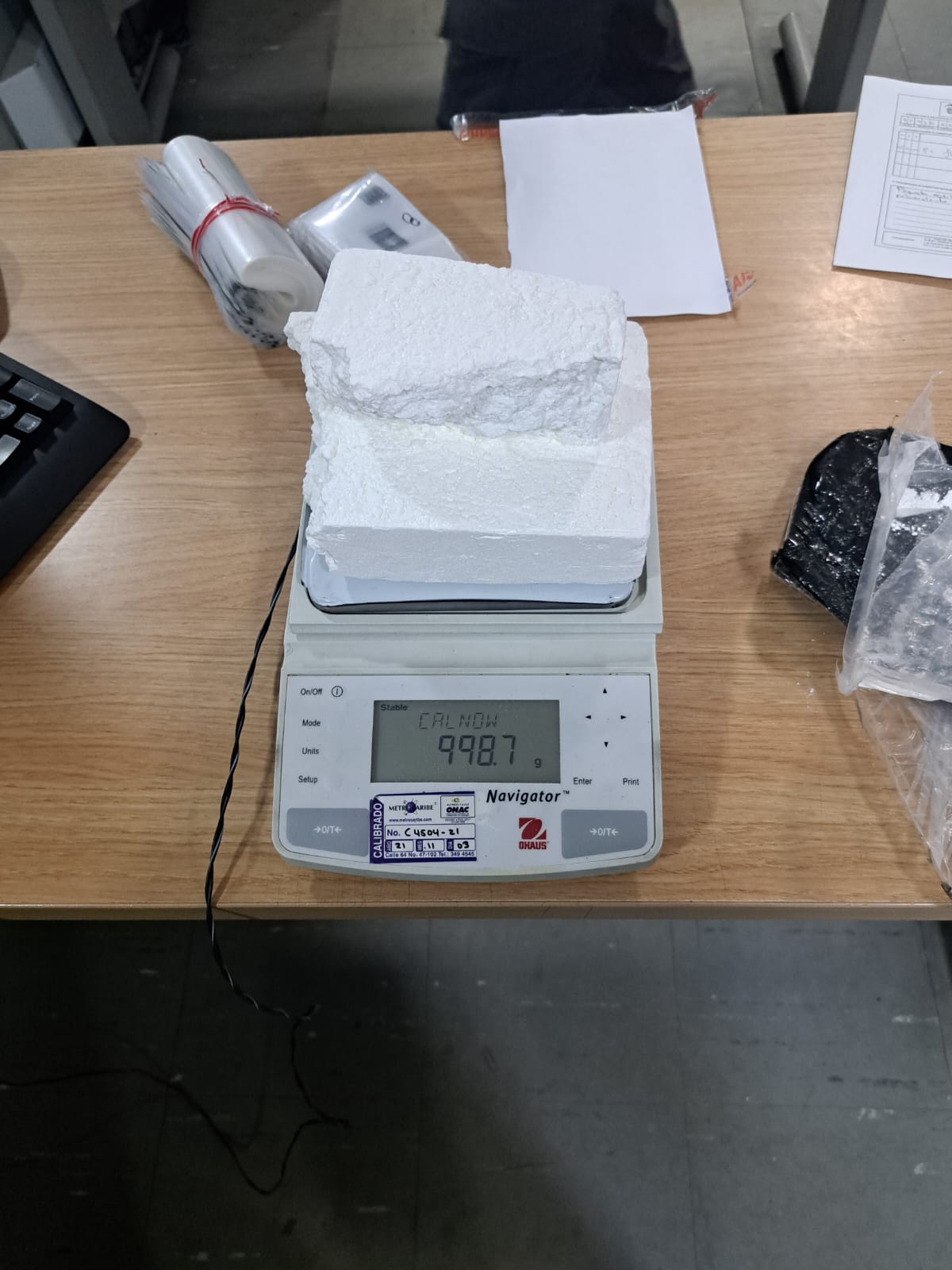 Bajo la coordinación de la secretaria de seguridad y convivencia mediante labores de inteligencia militar del batallón de Infanteria #38 “Miguel Antonio Caro” con apoyo inter institucional del CTI y POLICÍA NACIONAL SIJIN COSOC se da captura en el municipio de Mosquera, Cundinamarca en el barrio Santa Ana a dos personas de sexo masculino, a quienes se les encuentra en su poder, dentro de una maleta, un paquete prensado con vinipel de color negro donde se procede a verificación y se puede establecer que se trata de clorhidrato de cocaína cuyo fin sería ser comercializado y distribuido en los barrios de la ciudad. El alcaloide incautado tenía un peso aproximado de 1.000 gramos. Los capturados y el alcaloide incautado fueron dejados a disposición de la autoridad competente.