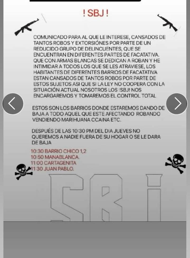 El panfleto señala que las advertencias están dirigidas exclusivamente a un grupo reducido de delincuentes que, según ellos, no son perseguidos por las autoridades locales.