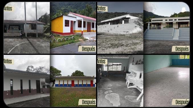 Además, durante el receso, hemos estado embelleciendo algunas escuelas rurales, 247 hasta la fecha, pero serán 1.000 durante el cuatrienio. Aquí les mostramos cómo algunos miembros de las Juntas de Acción Comunal y padres de familia, con insumos y herramientas brindadas por la